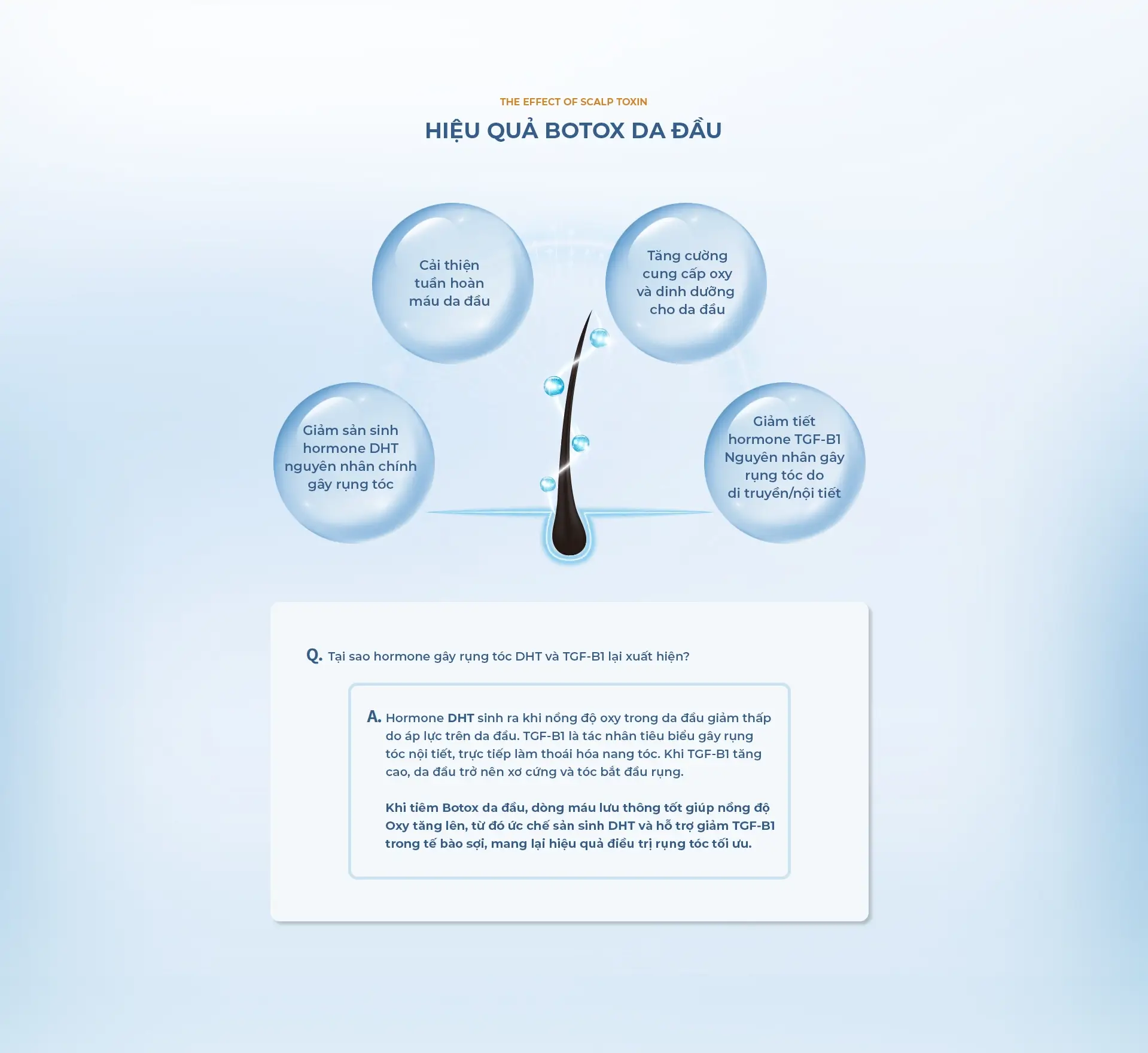 • Tránh chà xát mạnh hoặc kích thích vùng da đầu vừa tiêm. (Vui lòng kiêng massage mạnh hoặc ấn huyệt trong vòng 01 tháng).