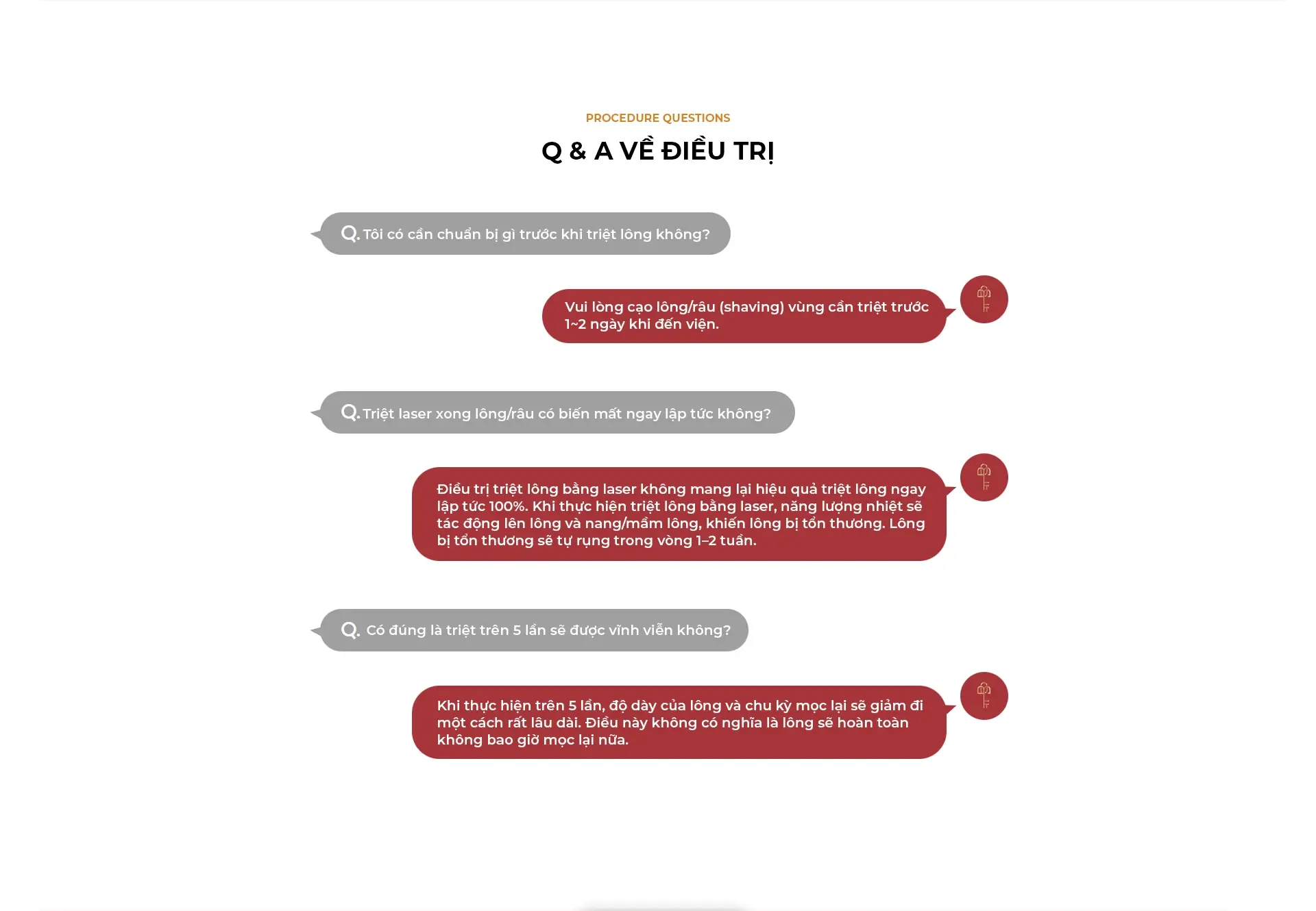 • Sau khi triệt, các sợi lông đã bị tác động nhiệt sẽ rụng tự nhiên trong vòng 1~2 tuần.