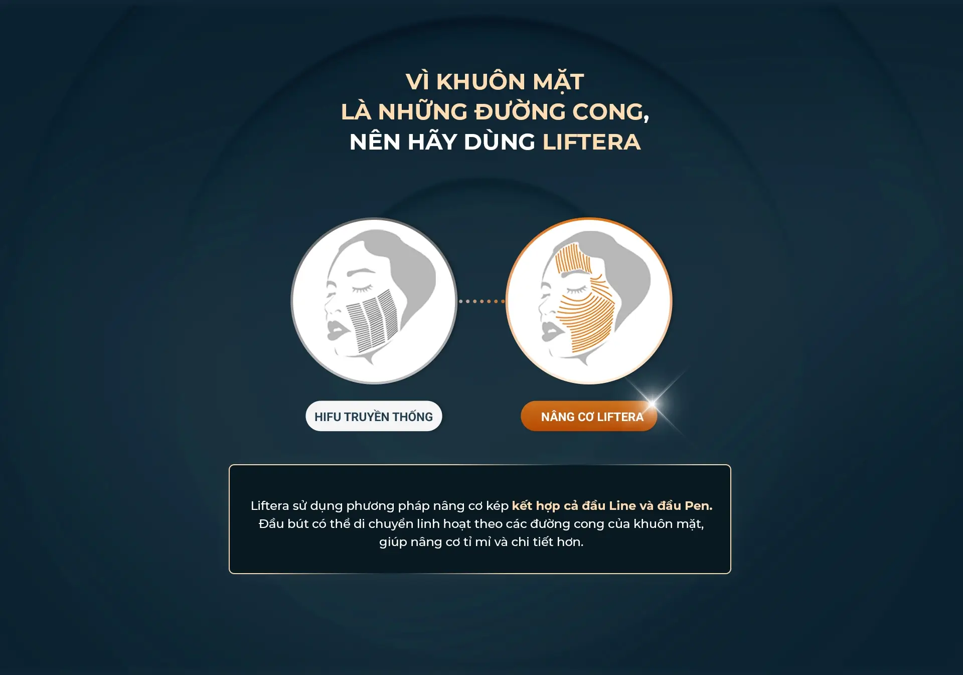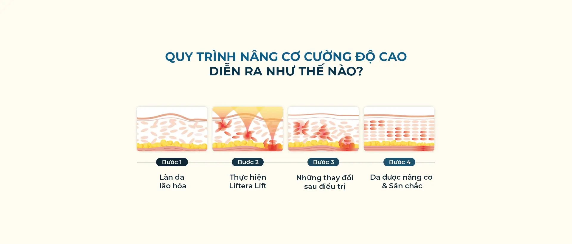 Năng lượng HIFU của Liftera 2 đi qua bề mặt da, truyền đến lớp cân cơ (SMAS) và mô cơ – nơi chứa Collagen, giúp kích thích sản sinh Collagen mà không gây tổn thương mô xung quanh, từ đó cải thiện tình trạng da chùng nhão do lão hóa.